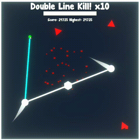 Super fun!! It's interesting to control, in a very good way :). I like that there are multiple ways of destroying the enemies, the combo also keeps it fast-paced. A great trick to make the hits feel even more impactful would be to give them a direction. But very nicely done :)!