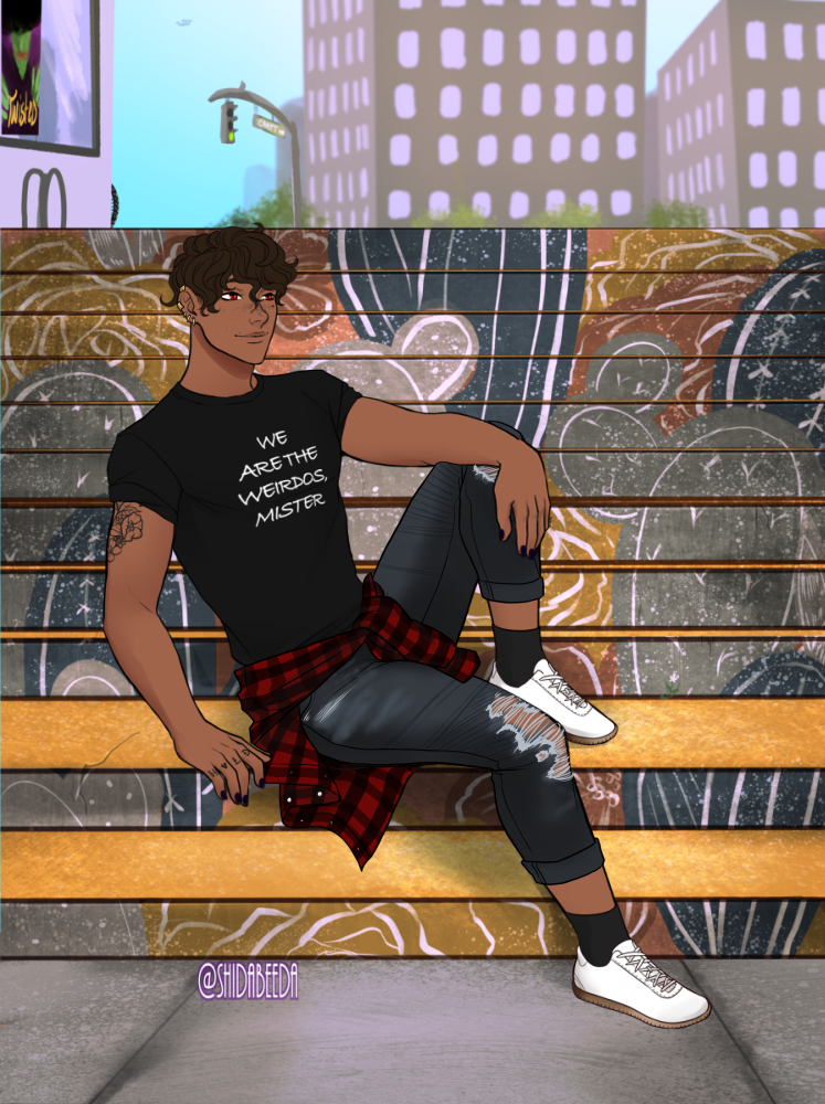 He just looked at him, now he was not a simp what so ever. He liked getting to know people before he just jumped into it so he just looked him up and down kinda examining him.