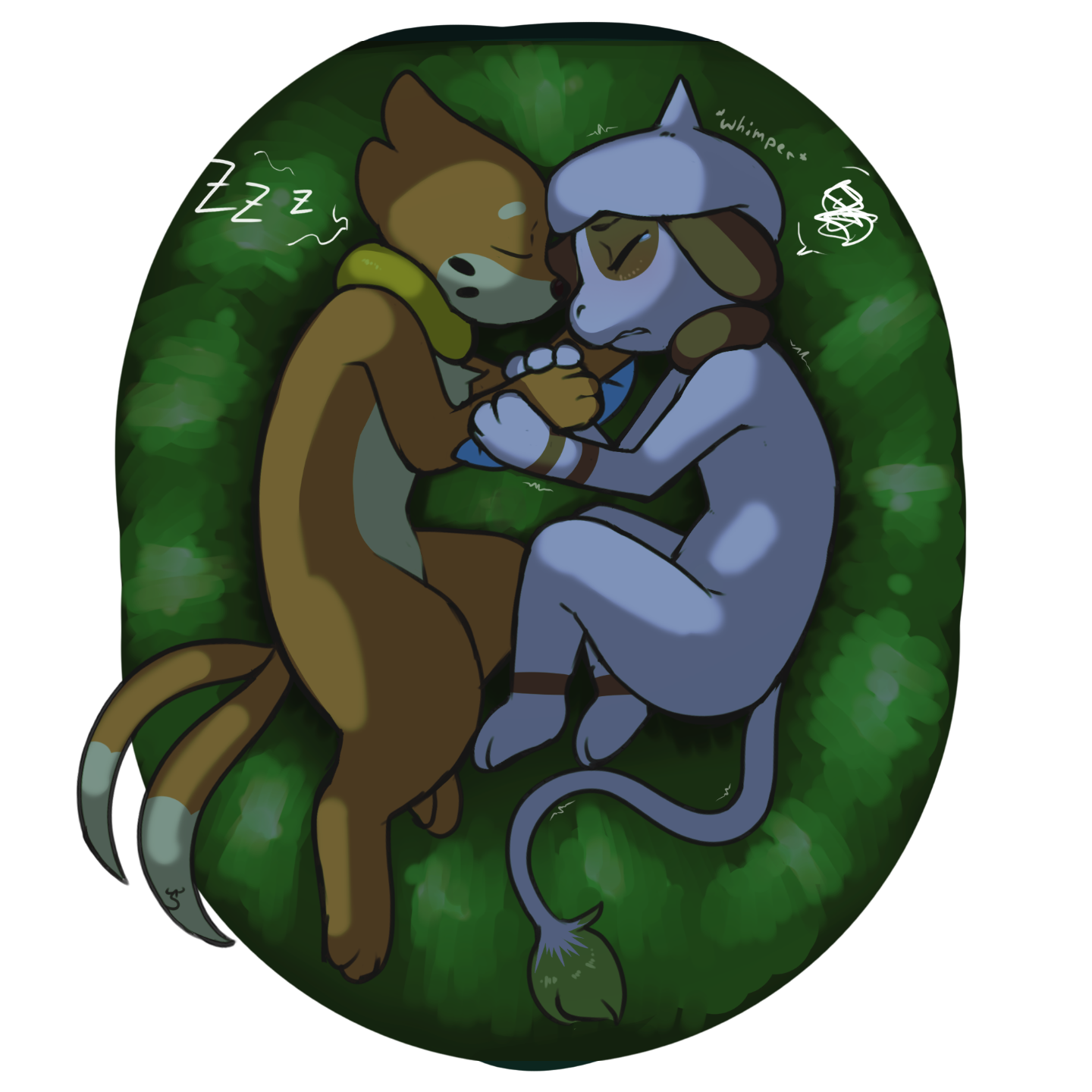 *hugging her legs*