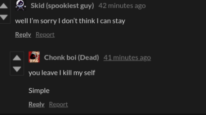 That being said, don't fake suicides on here. Like that's high key emotional manipulation, don't believe me you can look it up, and it's a downright shitty thing to do. It's especially invalidating to people who actually DO have suicidal ideations or suicide plans. People like you are the reason why people who actually need help never get it.