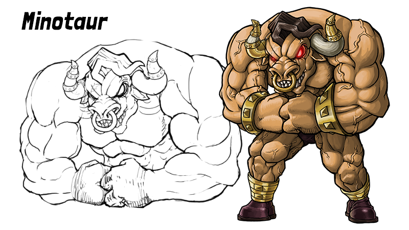 Boss Illustration: Minotaur & Super Mushroom Bros.