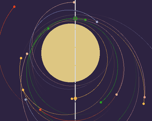 Really liked this; has a very zen garden feel to it. I could not for the life of me get good orbits going with more than one sun, but I had a good time trying!