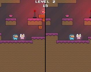 Really fun game, although in some levels only one person does everything while the other just steps on a pressure plate. The timer is really forgiving for only one player and the sound design is really good! Definitely a bit unexpected when dying but really fun. Great job!