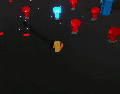 Very creative way to fight enemies! I'm picturing this as a mechanic in some boss fight where the boss changes between the two colors dynamically and you have to hurl the appropriate colored minion at him to deal damage. Another idea I had is what if when you try to hurl different colored enemies at each other, they don't take damage but they both temporarily become a mixture of the two colors (in this case green), and that could give you the ability to combat green enemies. There is a crazy number of ways to expand on this game, really amazing work!