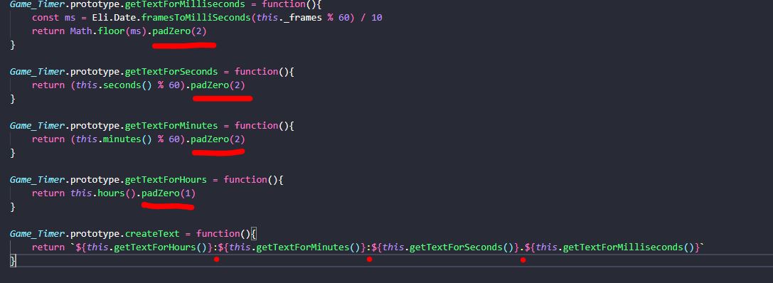 Now on the create text function where the plugin will get all time units and create the timer text. There are 3 red dots. Each one points to you where it does have the "separator" text between each unit. You can change them to whatever you want.