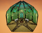 This scene could benefit from utilising trim sheets and tiling textures as opposed to baking all the assets to unique texture layouts. See the feedback sheet for examples of this. For the coloured glass one suggestion would be to use tiling textures and a master material that has the ability to adjust the colour of the glass with a Vector 3 node via material instancing. This would be a more efficient and flexible approach as the scene develops and also more memory efficient.