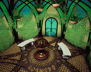 To make this piece more creative it would have been good to see a more unique take on a scene in the style of Myst. This current scene closely resembled the Greenhouse from Myst III. To move away from this you could have used the collected references of other indoor greenhouses and windows to make sketches and concept art. It would help you to design a greenhouse with a different structure, architectural elements and composition. You can use elements of what inspires you like the windows from Myst whilst not recreating the original scene. Something else you can do is come up with a narrative behind the scene. Think about the characters that would visit this scene - who are they? What is the scene used for? This will all help to mould the scene. You can use this information to determine whether there would be signs left of characters visiting.