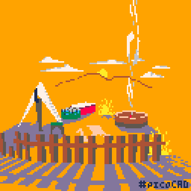 Classic camping scene! The shadows and the colors capture the feeling of setting sun so well! Great work!