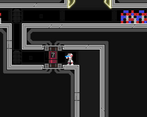 It uses sphere tracing to simulate 3d rays that bend around the black hole until they hit the accretion disk or the hole itself. The rays that escape are projected back to the 2d viewport and give the distortion effect. My version is simplified since I didn't need as much detail for a pixel art game and I wanted to make sure it didn't slow the game down. I added some constraints to limit the distortion to a certain radius, otherwise you could see reflections of the hero and the boss around the hole and the whole level was slightly distorted and looked a bit jarring. For the transition I just played around with the hole radius, bend force and accretion disk angle. The exit transition uses a similar shader with no accretion disk or black hole, only distorting the level.