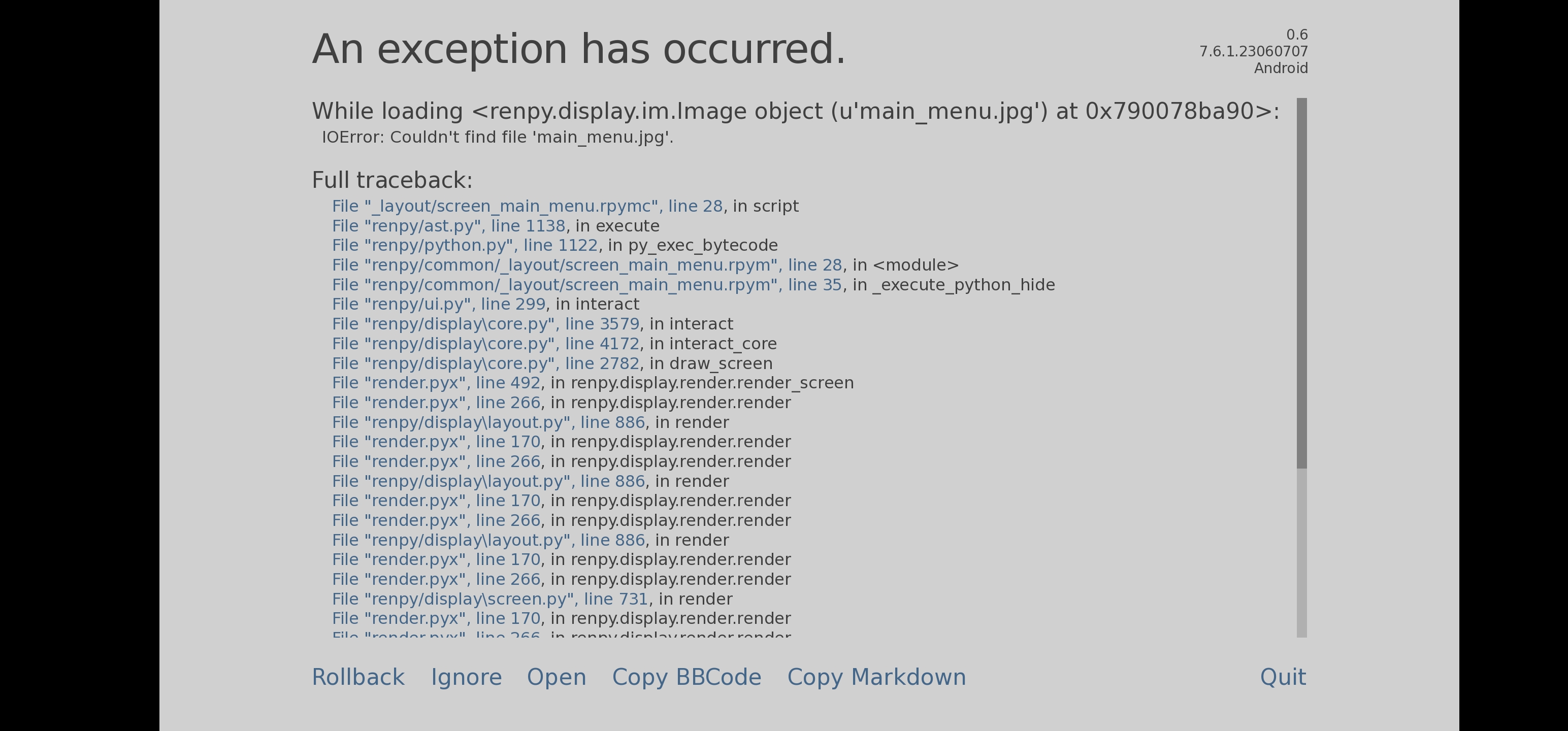Hello, I downloaded the new 0.6 update for Andriod (FULL-RES VERSION) and installed it directly. After starting the game app I only had a black screen and the scenes didn't load. I then installed the normal version and now my game crashes as soon as it starts. Is Andriod Download Data Corrupted? Got the Samsung Galaxy S23 ultra 1TB with which I played the game the whole time. How can it be Fixed without new Install.