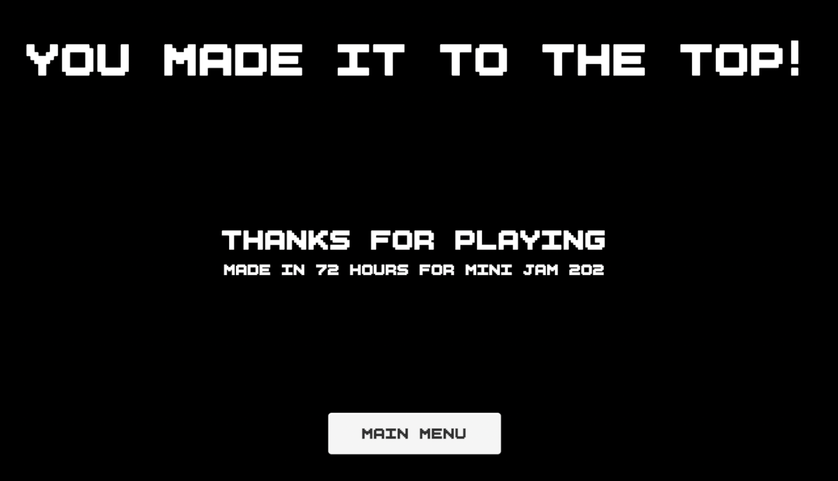 Loved the game design, it was fun and memorable. I did get hardstuck on one level (I think hallways 2 or 3?) but spent a good amount of time trying, and I thought the level progression was well done. One thing I would have liked was a quicker way to respawn, since this (at least for me) relied on a lot of experimentation!