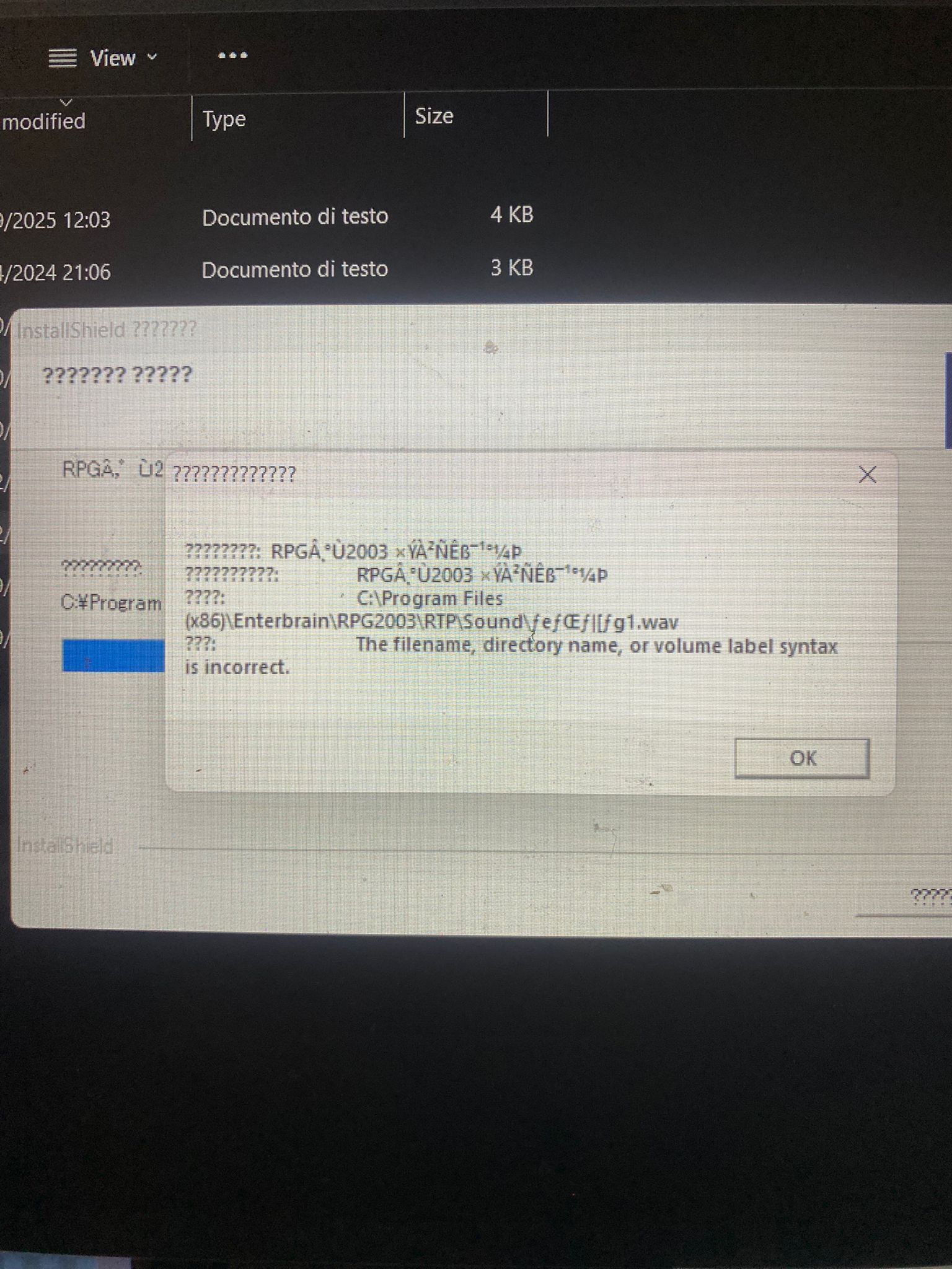 hello, sorry for the disturbance, but i seem to have some trouble running the game..! when i run rpg2003rtp with the japanese language set with the locale emulator, this pop up window shows up (it doesn't let me screenshot, so i had to take a picture with my phone), making it impossible for me to run the game...  is there any way to fix this ?