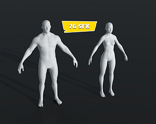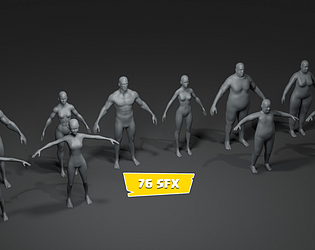 Male & Female Body Base Mesh – 28 Animations (5K) consist of 10 base meshes and 76 sound effects that fit with them.