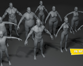 Human Body Base Mesh 40 Models Pack is a complete collection of 40 stylized human base meshes + 76 sound effects.