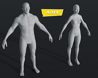Male & Female Body Base Mesh – 28 Animations (10K) consist of 10 base meshes and 76 sound effects that fit with them.