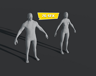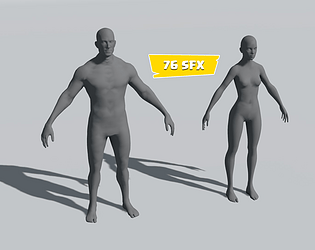 Male & Female Body Base Mesh – 28 Animations (1K) consist of 10 base meshes and 76 sound effects that fit with them.