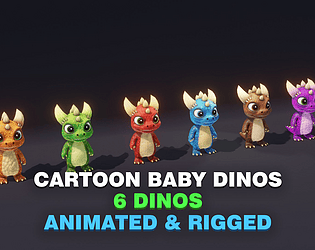 Cute Cartoon Dinosaurs Pack includes 6 cartoon dinosaur 3d models : Red, Green, Blue, Purple, Brown, and Orange.