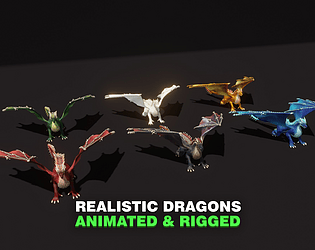 Realistic Animated Dragons 3d Model Pack includes 6 animated dragons: Black, Green, Red, Blue, White, and Gold.