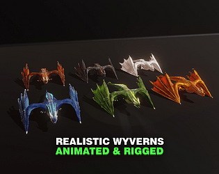 Realistic Animated Wyverns 3d Model Pack includes 6 realistic animated wyverns: Black, Green, Red, Blue, White, & Gold.