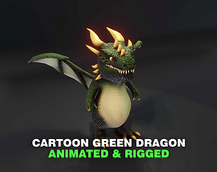 Cartoon Green Dragon Animated 3D Model includes rig & 12 animations & facial expressions.