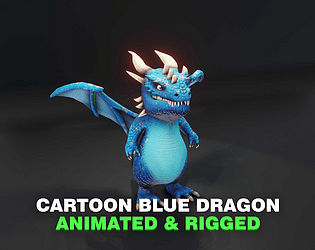 Cartoon Blue Dragon Animated 3D Model includes rig & 12 animations & facial expressions.