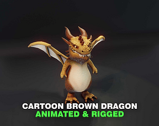 Cartoon Brown Dragon Animated 3D Model includes rig & 12 animations & facial expressions.