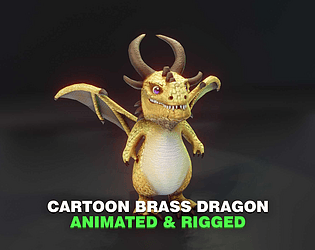Cartoon Brass Dragon Animated 3D Model includes rig & 12 animations & facial expressions.