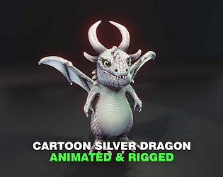 Cartoon Silver Dragon Animated 3D Model includes rig & 12 animations & facial expressions.