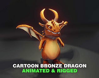 Cartoon Bronze Dragon Animated 3D Model includes rig & 12 animations & facial expressions.