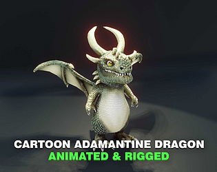 Cartoon Adamantine Dragon Animated 3D Model includes rig & 12 animations & facial expressions.