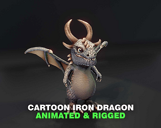 Cartoon Iron Dragon Animated 3D Model includes rig & 12 animations & facial expressions.