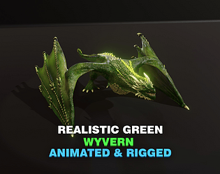 Realistic Green Wyvern Animated 3D Model includes rig & 16 animations-
