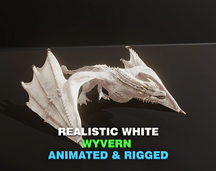 Realistic White Wyvern Animated 3D Model includes rig & 16 animations-