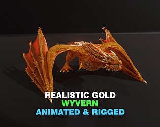 Realistic Gold Wyvern Animated 3D Model includes rig & 16 animations-