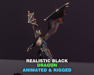Realistic Black Dragon Animated 3D Model includes rig & 16 animations
