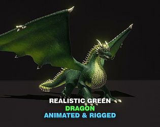 Realistic Green Dragon Animated 3D Model includes rig & 16 animations