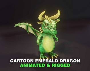 Cartoon Emerald Dragon Animated 3D Model includes rig & 12 animations & facial expressions.