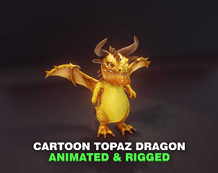 Cartoon Topaz Dragon Animated 3D Model includes rig & 12 animations & facial expressions.