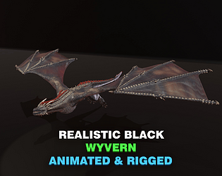 Realistic Black Wyvern Animated 3D Model includes rig & 16 animations-