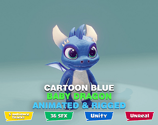 Blue Baby Dragon includes 12 animations, facial expressions, as well as 5 fantasy music loops and 36 sound effects.