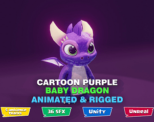 Purple Baby Dragon includes 12 animations, facial expressions, as well as 5 fantasy music loops and 36 sound effects.