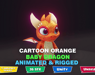 Orange Baby Dragon includes 12 animations, facial expressions, as well as 5 fantasy music loops and 36 sound effects.