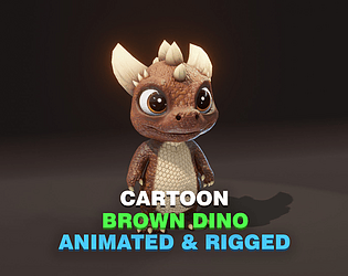 Cartoon Animated Brown Dino 3D Model comes fully rigged with 17 animations and facial expressions (shape keys)