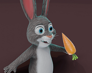 Cartoon Rabbit Animated 3D Model includes 6 animations: idle, idle (eating), talk, walk, run, jump.
