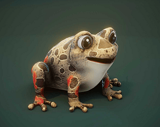 Cartoon Frog Animated 3D Model includes 7 animations: idle, look around, talk, walk, run, jump, eat.