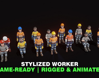 Stylized Male Worker 3D Model – Animated & Customizable includes rig & 14 animations & facial rig.