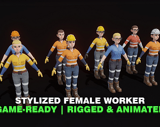 Stylized Female Worker 3D Model – Animated & Customizable includes rig & 14 animations & facial rig.