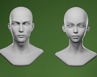 Stylized Anime Male and Female Head Base Mesh 3D Model includes clean, quad-based male & female anime head basemeshes.
