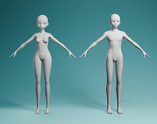 Stylized Anime Male and Female Character Base Mesh 3D Model includes two clean, quad-based anime character base meshes.