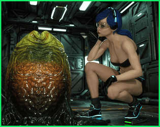 Overcome by a pair of facehuggers who prep her, for their adult Alien who uses Ashley in every way